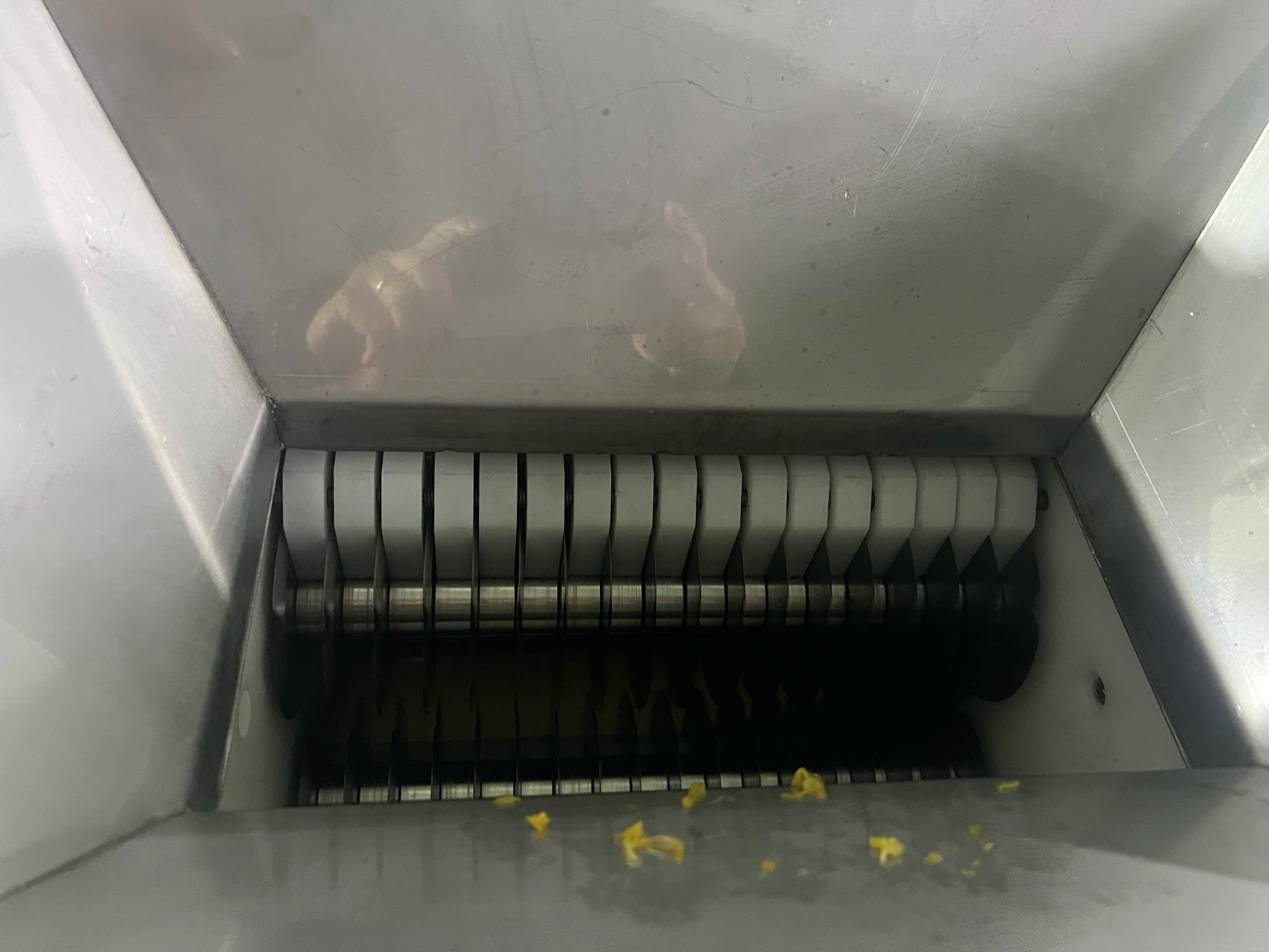 - Phần bã và vỏ được đẩy ra ngoài qua cửa xả riêng biệt, còn phần hạt nằm ngay trên lưới lọc. Thiết kế này cực kỳ hữu dụng trong ép nước cam vì phần hạt còn được thu mua để sử dụng làm vị thuốc hoặc làm đẹp.