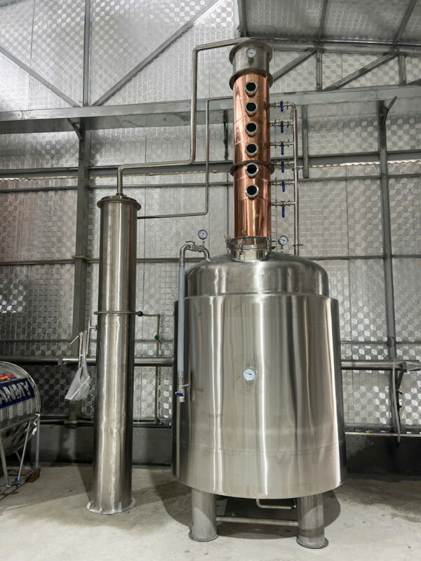 Cột chưng cất rượu: Gồm nhiều tầng xếp chồng lên nhau, các tầng được ngăn cách bởi 1 đĩa luyện và nhiều bóng khí. Mỗi tầng đều có 1 kính quan sát. Trên đỉnh cột chưng cất là bộ ngưng tụ lần 1 (sơ cấp) và 1 hệ thống hồi lưu bên ngoài. Thiết kế trên sẽ giúp nhà chưng cất dễ quan sát, quản lý và thực hiện tách bỏ phần rượu đầu chứa nhiều độc tố chính xác nhất.