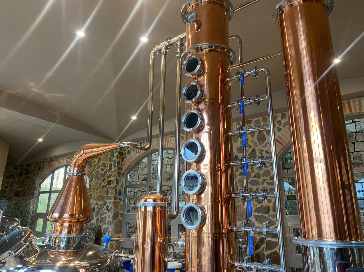 - Phần hơi có diện tích và thời gian tiếp xúc với vật liệu đồng trên cột tháp lâu hơn. Giúp khử lưu huỳnh và tăng thêm tính sắc nét về hương vị;